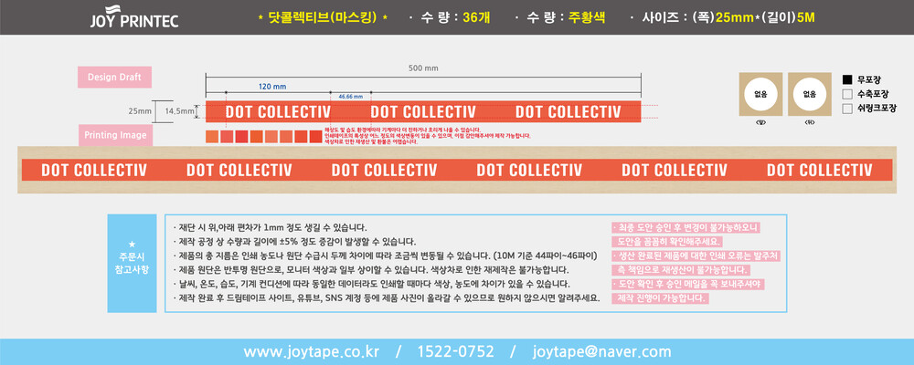 ※인쇄 마스킹테이프-36개 닷콜렉티브- 무포장 / 25mm*5M