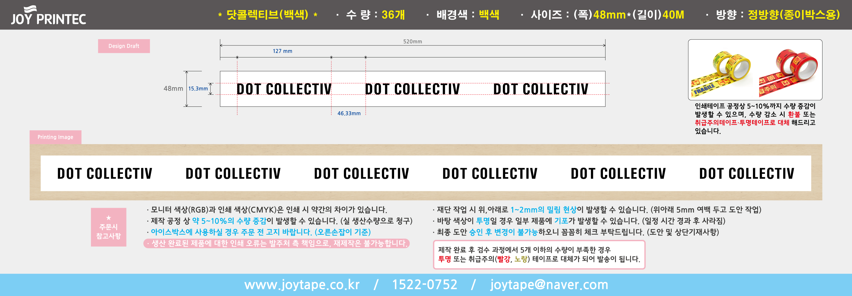 ※무동판 흑백인쇄테이프-36개 닷콜렉티브- 무포장 / 정방향(종이박스 용)
