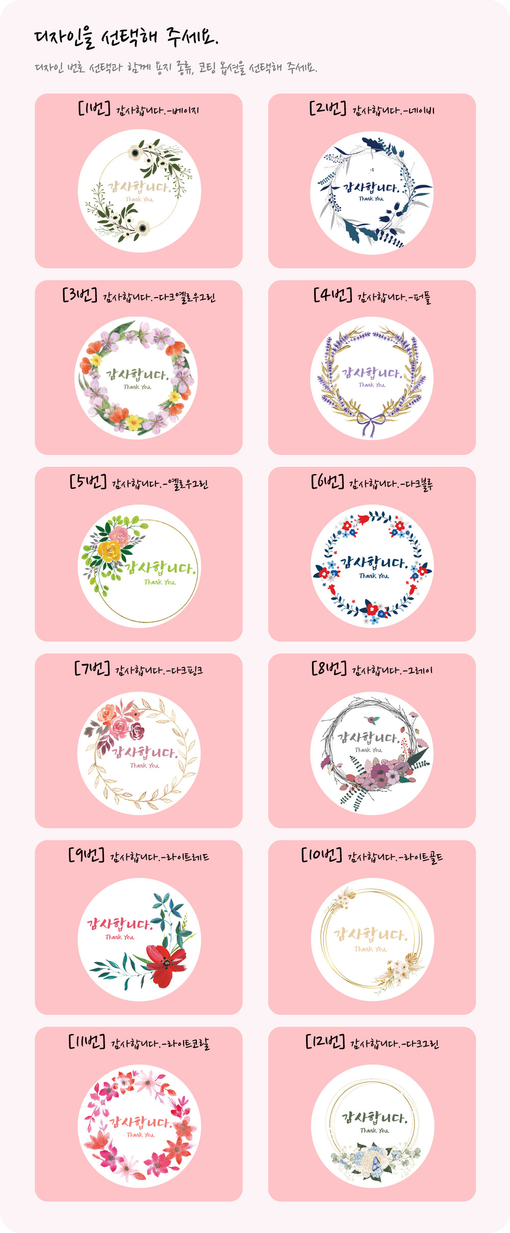 감사합니다 스티커 #2(12개 디자인 / 60mm-원형)