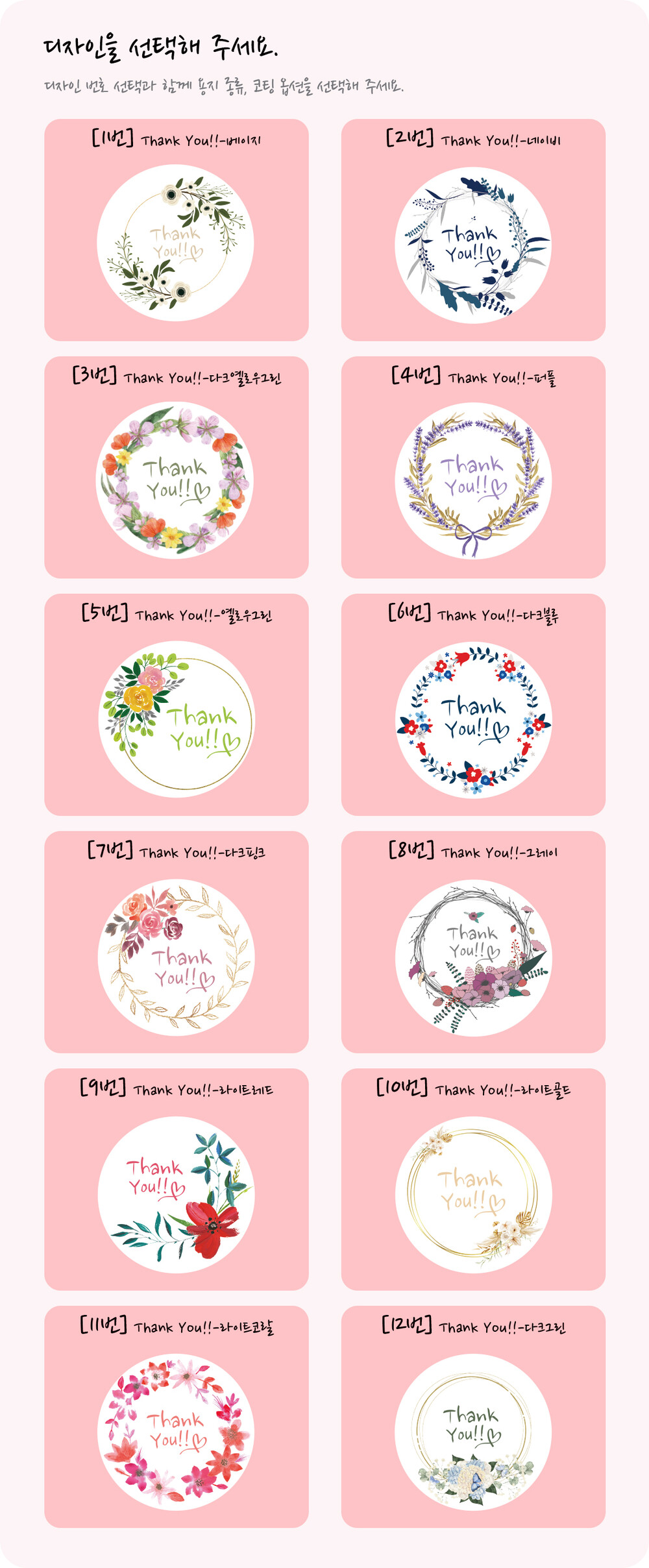 땡큐(Thank You) 스티커 #2(12개 디자인 / 60mm-원형)