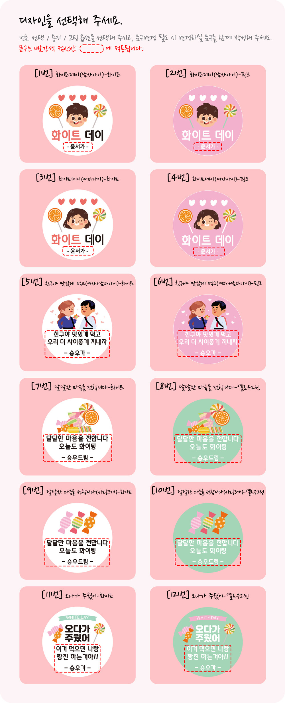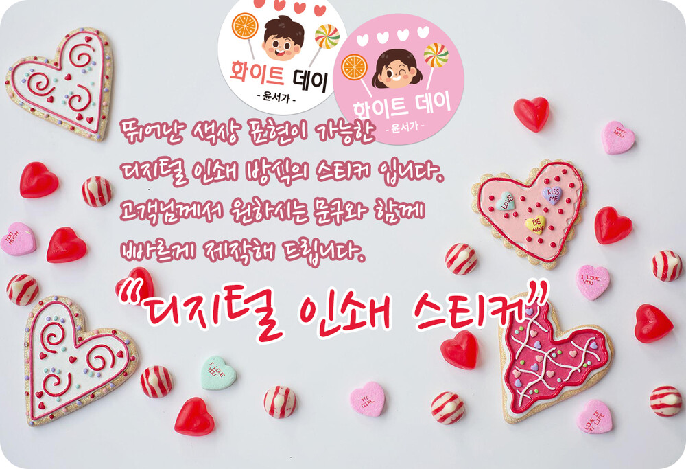 화이트데이 스티커 (12개 디자인 / 50mm-원형)